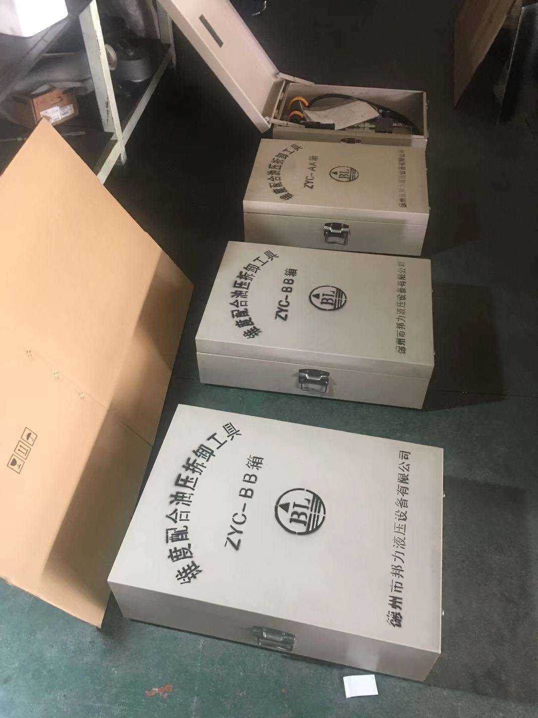 ZYC-AB分為A、B兩箱。A箱由SYB-1手動泵、順序閥、SHQ-1增壓器、閥塊等組成。B箱由SYB-1手動泵、KYG-20空心油缸、WZ萬用爪等組成。該產品具有通用性強、體積小、重量輕、結構緊湊操作方便等特點。 ZYC-AB主要用于重型和大型設備的無鍵聯接錐度配合與圓柱配合傳動件的拆卸與裝配,是大馬力內燃機車、輪船、艦艇、石油鉆機等制造檢修必備液壓工具。